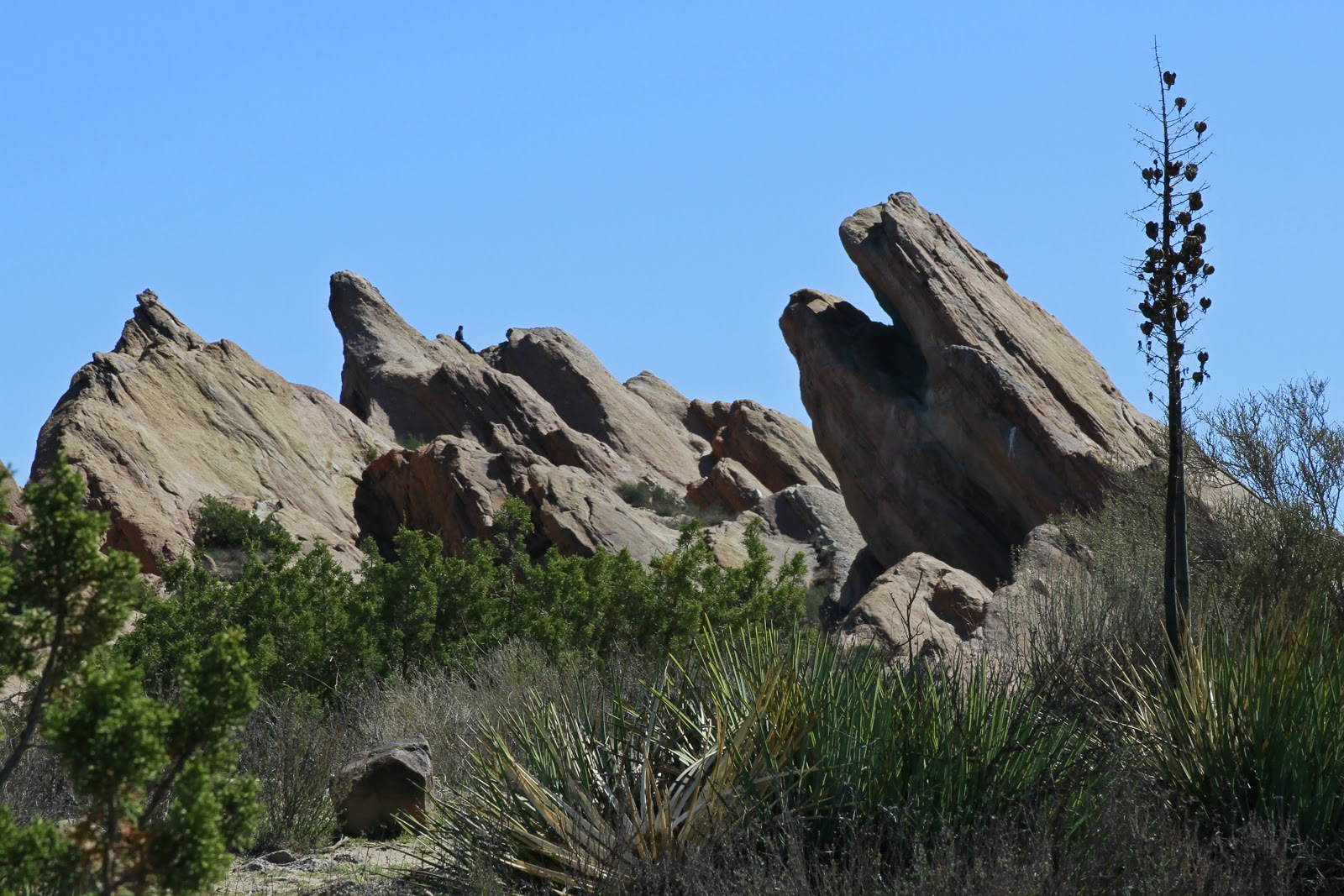 Well, today I didn't have any work to do, so I decided to go visit my family 'down below'. I took the opportunity to stop and do some hiking at Vasquez Rocks (combining my need for exercise with my love of photography). It is so easy to drive by on the freeway and just kind of notice, but it is a lot of fun to hike around in the area, because there are so many rock outcroppings and trails. I think I found a new cover photo for FB!